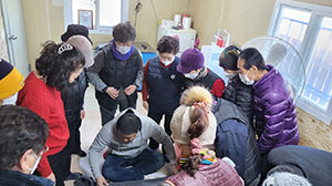 공동체사업단| ■황태손질사업(거진작업장) : | 고성군 특산품인 황태를 대대리 덕장으로부터 납품받아 손질(황태포 제작) 후 재 납품함 |